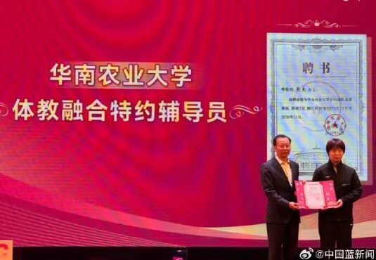 乒乓球运动员蒯曼,任华南农业大学特约辅导员